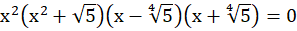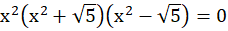 Przerzucasz prawą stronę równania na lewą. Wyłączasz najwyższą wspólną potęgę zmiennej razem ze współczynnikiem przed nawias. Następnie dwukrotnie wykorzystujesz wzór na różnicę kwadratów do rozbicia na czynniki poszczególnych nawiasów. Pierwiastki odczytujesz, analizując poszczególne człony powstałej postaci iloczynowej.