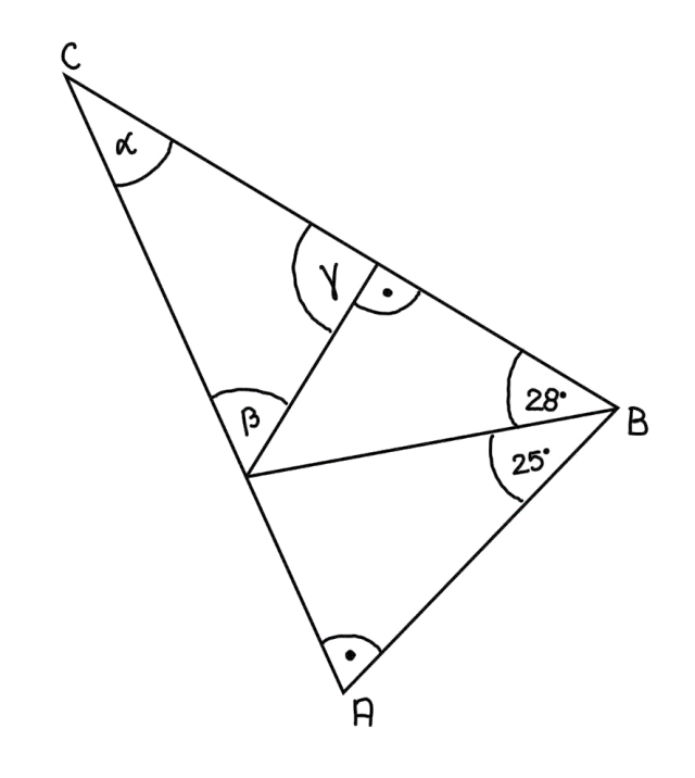 Oblicz miarę kąta β wiedząc że α = 37° i γ = 90°
