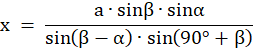 Reszta kątów jest wynikiem założenia, że suma kątów wewnętrznych w trójkącie wynosi 180°. Wykorzystując dane oznaczenia i twierdzenie sinusów wyznaczasz długość odcinka x.