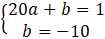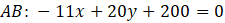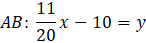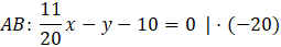 W tym zadaniu musisz wyznaczyć równania prostej w postaci kierunkowej i ogólnej, takiej, że ta prosta przechodzi przez punkty A = (20, 1) oraz B = (0, -10).