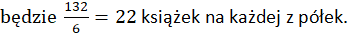 Książek było 120 sztuk, Ania dokupiła 12, zatem wszystkich książek będzie 120 + 12 = 132. Aby policzyć średnią, trzeba więc podzielić ilość wszystkich książek przez liczbę półek. Średnio więc