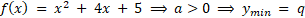 Dla funkcji kwadratowej f(x) = x2 + 4x + 5 wyznacz wartość najmniejszą i największą oraz argumenty, dla których są przyjmowane.