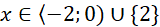 Wypisz elementy, dla których funkcje są sobie równe – to znaczy, że wykresy funkcji w tym miejscu się przecinają. Są dwa takie punkty: x = -2 i x = 2.