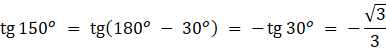 Ramię końcowe kąta 1950o pokrywa się z ramieniem końcowym kąta 150o. Punkty leżące na ramionach końcowych tych kątów możesz wyznaczyć, korzystając z wartości funkcji tangens dla kąta 150o oraz definicji funkcji tangens. Tangens definiuje się jako:
