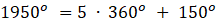Ramię końcowe kąta 1950o pokrywa się z ramieniem końcowym kąta 150o. Zatem wystarczy rozpatrzeć punkty leżące na ramieniu końcowym tego drugiego kąta.