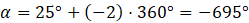 Z powyższych wartości zostaje wybrać te należące do przedziału ⟨-720°; 0°⟩.