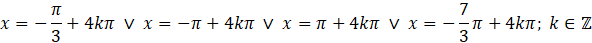Oba równania połączone są spójnikiem „lub”. Finalnym wynikiem jest zatem suma rozwiązań obu z nich: