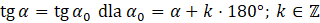 Dany jest kąt α (α ∈ (-180°; 360°)). Wyznacz jego takie miary, aby ich tangens był równy 4.