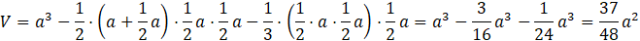 Z sześcianu wycięto graniastosłup o podstawie trapezu oraz ostrosłup o podstawie trójkąta prostokątnego. Objętość bryły to: