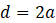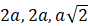 Zaznaczone odcinki to: dłuższa przekątna podstawy graniastosłupa równa 2𝑎 oraz krótsza przekątna bryły. Rzut prostokątny przekątnej bryły na podstawę krótsza przekątna podstawy o długości