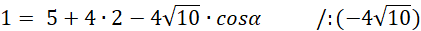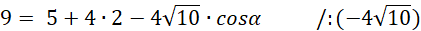 Skorzystaj z twierdzenia cosinusów: