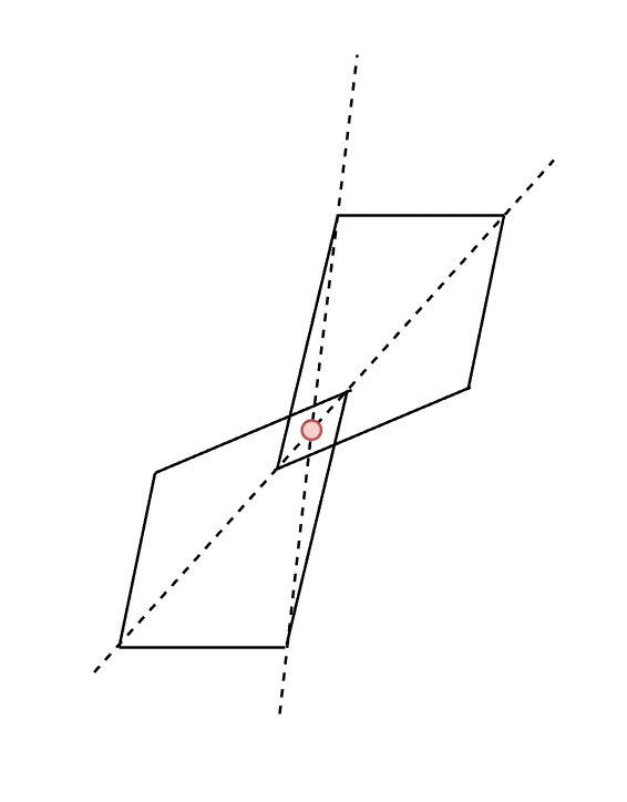 Narysować proste przechodzące przez odpowiadające sobie wierzchołki. Punkt przecięcia prostych to środek symetrii.