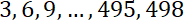 Oblicz sumę wszystkich liczb mniejszych od 500 podzielnych przez 3: