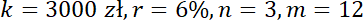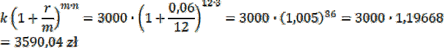 Ile wyniesie kapitał końcowy lokaty na 3 lata oprocentowanej na 6% w skali roku, jeśli kapitalizacja odsetek następuje miesięcznie i wpłacono 3000 zł?