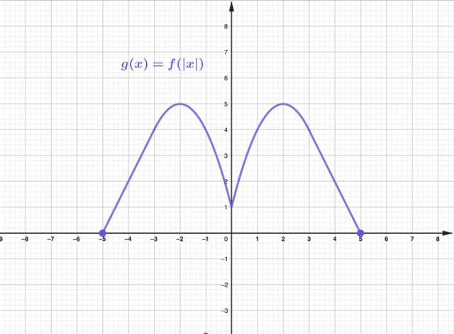 , więc część wykresu funkcji f, znajdująca się po lewej stronie osi OY jest „kasowana”, a część znajdująca się po jej prawej stronie pozostaje oraz dodatkowo jest odbijana symetrycznie względem tej osi. Dzięki temu powstaje funkcja parzysta. Z jej wykresu odczytaj wartości najmniejszą oraz największą.