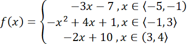 Naszkicuj w jednym układzie współrzędnych wszystkie funkcje: dwie liniowe i funkcję kwadratową oraz zaznacz je w ich przedziałach. Zauważ, że wykres funkcji g powstał w wyniku przekształcenia