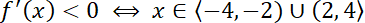 Najpierw wyznacz dziedzinę funkcji f oraz określ jej pochodną f’, a także dziedzinę tej pochodnej. Następnie wyznacz miejsca zerowe funkcji pochodnej. Zauważ, że skoro współczynnik a funkcji kwadratowej jest ujemny, to ramiona paraboli są skierowane w dół. Na tej podstawie określ znak pochodnej. Skorzystaj z faktu, że gdy pochodna jest ujemna, to funkcja jest malejąca, a gdy pochodna ma znak dodatni, to funkcja rośnie.