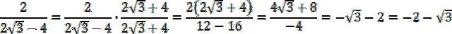 Pozbądź się niewymierności z mianownika, czyli pomnóż licznik i mianownik ułamka przez wartość znajdującą się w mianowniku, z przeciwnym znakiem pomiędzy wyrażeniami.