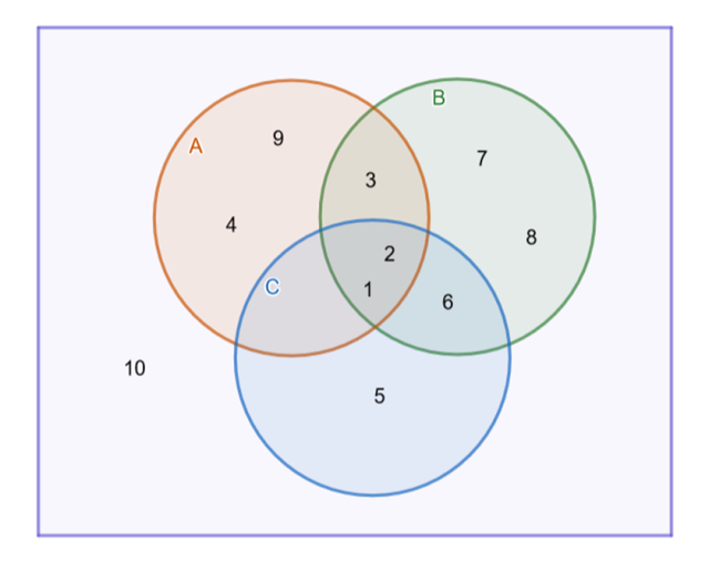 . Przerysuj przedstawiony obok diagram do zeszytu i umieść na min liczby ze zbioru U, korzystając z tego, że: