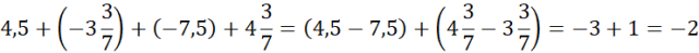 Zapisz w jednym nawiasie różnicę ułamków o mianowniku 7, a w drugim różnicę ułamków dziesiętnych. Wykonaj odejmowania w nawiasach, pamiętaj, żeby odejmować od większej wartości bezwzględnej mniejszą i wstawiać znak większej liczby pod wartością bezwzględną.