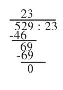 W tym zadaniu musisz obliczyć 529 : 23 sposobem pisemnym i sprawdzić wynik za pomocą mnożenia.