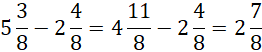 Aby wykonać takie odejmowanie, musisz zapisać liczbę całkowitą w postaci ułamka o tym samym mianowniku. Odejmowanie ułamków o jednakowym mianowniku wykonujemy, odejmując od siebie liczniki i przepisując mianownik
