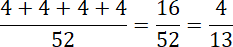 W talii kart jest 16 figur: 4 walety, 4 królowe, 4 króle i 4 asy (po jednym w każdym kolorze). Musisz podzielić liczbę tych kart przez całkowitą liczbę kart w talii.