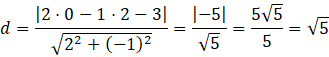Wyznacz odległość w jakiej znajduje się punkt A(0, 2) od prostej l: y = 2x - 3.