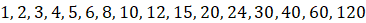Wypisz wszystkie dzielniki liczby 120 i uporządkuj je w kolejności od najmniejszego do największego.