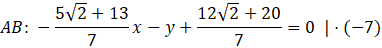 Aby uzyskać równanie w postaci ogólnej, wystarczy, że przeniesiesz y na drugą stronę i przemnożysz przez minus, aby pozbyć się minusów stojących przy większości wyrazów oraz przez 7, aby pozbyć się ułamka.