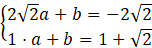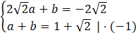 Ten układ równań najszybciej rozwiążesz z metody przeciwnych współczynników. Zauważ, że aby po dodaniu stronami skrócił się b, to wystarczy przemnożyć drugie równanie (lub pierwsze) przez -1.