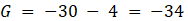 Zatem, punkt G znajduje się na osi o dwa punkty jednostkowe bliżej niż punkt oznaczony jako -30, więc: