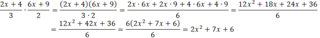 Kiedy mnożysz nawiasy przez siebie, musisz wymnożyć każdy wyraz jednego nawiasu przez każdy wyraz drugiego nawiasu. Jeśli powstałe wyrazy składają się z tych samych zmiennych w tych samych potęgach to musisz je dodać do siebie, aby uprościć wyrażenie. Po uproszczeniu liczniku musisz wyłączyć przed nawias wspólny czynnik, aby skrócić z nim mianownik.