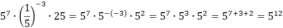 Skorzystaj z własności potęg: , oraz i znajdź brakujące wykładniki.