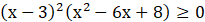 W pierwszym kroku wyznaczamy miejsca zerowe. Współczynnik przy najwyższej (parzystej), potędze jest dodatni, więc wykres zaczynamy rysować z lewej górnej części układu współrzędnych. Wykres odbija się w punktach będącymi miejscami zerowymi o parzystych krotnościach. Opisujemy przedział, który znajduje się nad osią OX wraz z miejscami zerowymi.