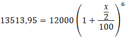 W tym zadaniu musisz obliczyć, ile wynosiło oprocentowanie lokaty 3-letniej z naliczaniem odsetek co pół roku, jeśli wpłacono 12000 zł i po 3 latach na koncie znajduje się 1513,95 zł więcej.