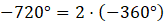 Zauważ, że kąt -720° jest równy sumie dwóch kątów pełnych, ramię końcowe pokryje się z ramieniem początkowym.