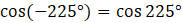 Odpowiedź: Kąty spełniające warunek to: -225°, -135°, 135°, 225°.