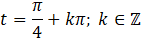 Rozwiązań tego równania jest nieskończenie wiele, a różnica pomiędzy kolejnymi z nich wynosi π, co wynika z okresowości funkcji tangens. Zatem: