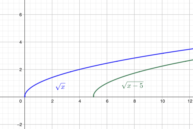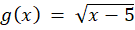 Aby narysować wykres funkcji g, przesuń wykres funkcji f o 5 jednostek w prawo, wzdłuż osi OX, zauważ, że dziedzina funkcji g wzrośnie o 5 jednostek: