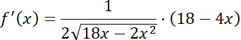 Najpierw wyznacz dziedzinę funkcji f oraz określ jej pochodną f’, a także dziedzinę tej pochodnej. Następnie wyznacz miejsca zerowe funkcji pochodnej. Zauważ, że skoro współczynnik a wielomianu jest dodatni, to zacznij rysować wykres funkcji z prawej strony powyżej osi OX. Na tej podstawie określ znak pochodnej. Skorzystaj z faktu, że gdy pochodna jest ujemna, to funkcja jest malejąca, a gdy pochodna ma znak dodatni, to funkcja rośnie.