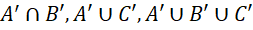 Podane informacje zaznacz na diagramie oraz dopełnienia podanych zbiorów: A’, B’, C’, czyli różnice całej przestrzeni z danym zbiorem.