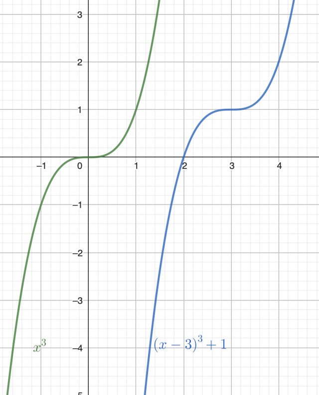 Zauważ, że aby narysować wykres funkcji f, najpierw musisz narysować wykres funkcji , a następnie przesunąć go o jedną jednostkę w górę oraz o 3 jednostki w prawo.