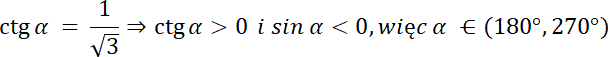 W tym zadaniu na podstawie znaku funkcji sinus oraz wartości cotangens kąta α określ, do której ćwiartki układu współrzędnych należy szukany kąt, a następnie wyznaczyć dokładna wartość α.