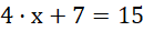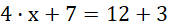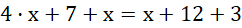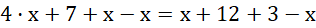 Przekształcenie polega na zredukowaniu wyrazów podobnych po prawej i lewej stronie równania (od obu stron odejmujesz x) oraz dodaniu po prawej stronie równania liczb (12 + 3).