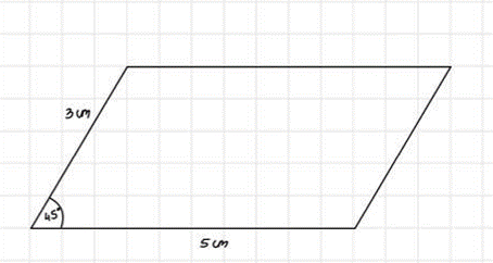 W tym zadaniu musisz narysować na kartce w kratkę równoległobok o bokach 3 cm i 5 cm oraz kącie ostrym 45º.