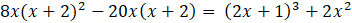 Aby rozwiązać dane równanie, przekształć jego lewą stronę, korzystając ze wzoru skróconego mnożenia na kwadrat sumy oraz wymnażając wyrażenia w nawiasach. Z lewej strony skorzystaj ze wzoru na sześcian sumy. Następnie po każdej ze stron zredukuj jednomiany podobne. Przenieś wszystkie jednomiany na jedną stronę równania, a następnie rozwiąż równanie kwadratowe.