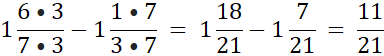 Pamiętaj o kolejności wykonywania działań. Jeżeli w działaniu występują nawiasy – zacznij od nich. Następnie wykonaj mnożenie, później dodawanie i odejmowanie. Pamiętaj, że żebyś mógł dodawać i odejmować ułamki, muszą mieć wspólny mianownik. W tym przypadku będzie to iloczyn mianowników, czyli 21