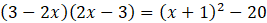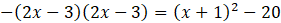 Z pierwszego czynnika lewej strony równania wyłącz przed nawias -1. Wymnóż wyrażenia w nawiasach za pomocą wzorów skróconego mnożenia. Zredukuj jednomiany podobne. Oblicz wyróżnik równania, a następnie jego rozwiązania.