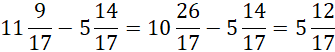 Aby wykonać takie odejmowanie, musisz zapisać liczbę całkowitą w postaci ułamka o tym samym mianowniku. Odejmowanie ułamków o jednakowym mianowniku wykonujemy, odejmując od siebie liczniki i przepisując mianownik